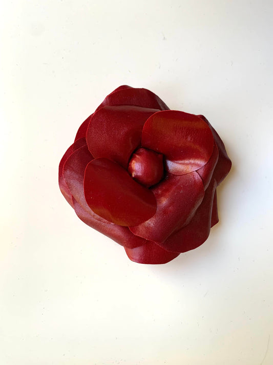 Flower Brooch | Velvet-Faux Leather Burgundy Small