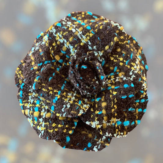 Flower Brooch| Tweed Wool Fabric Red Beige Small